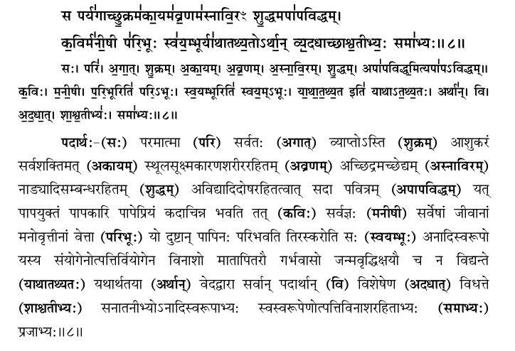 যযুবেদ অধ্যায় ৪০ অনুঃ ০৮।